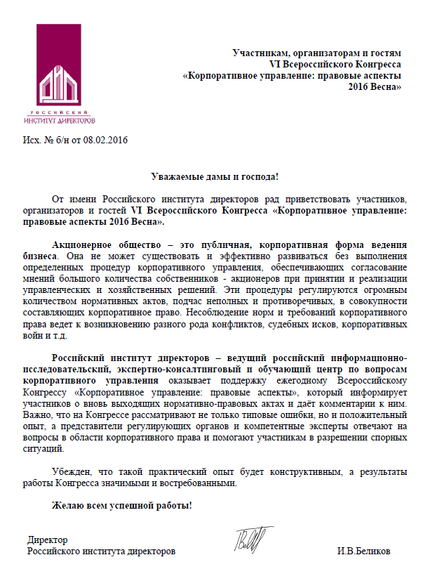 С докладами приглашены разработчики новых норм корпоративного права и самые авторитетные эксперты.